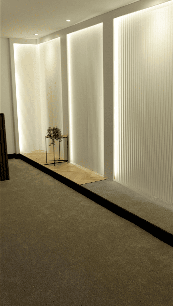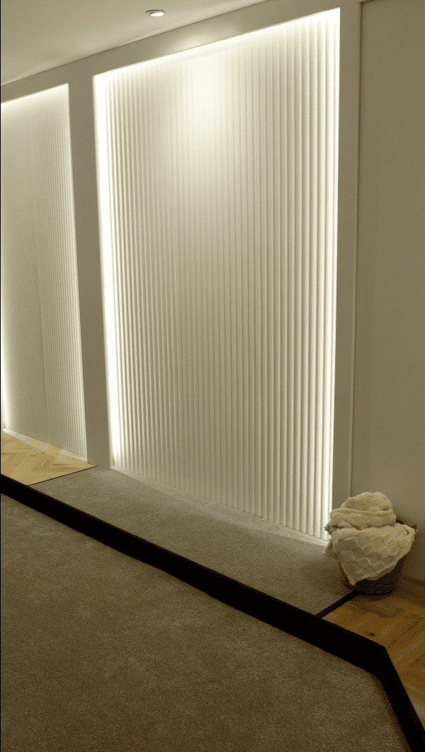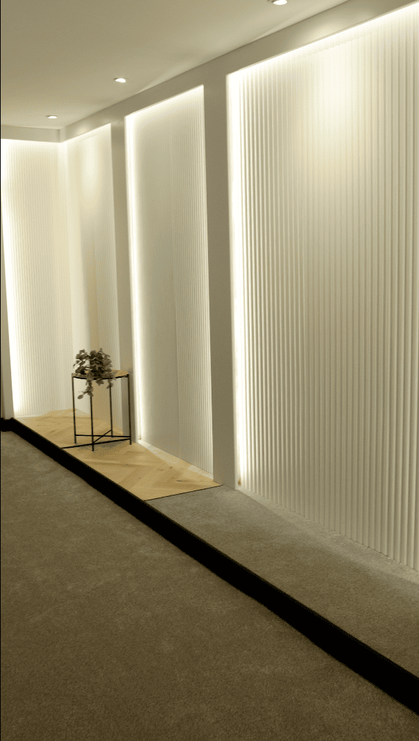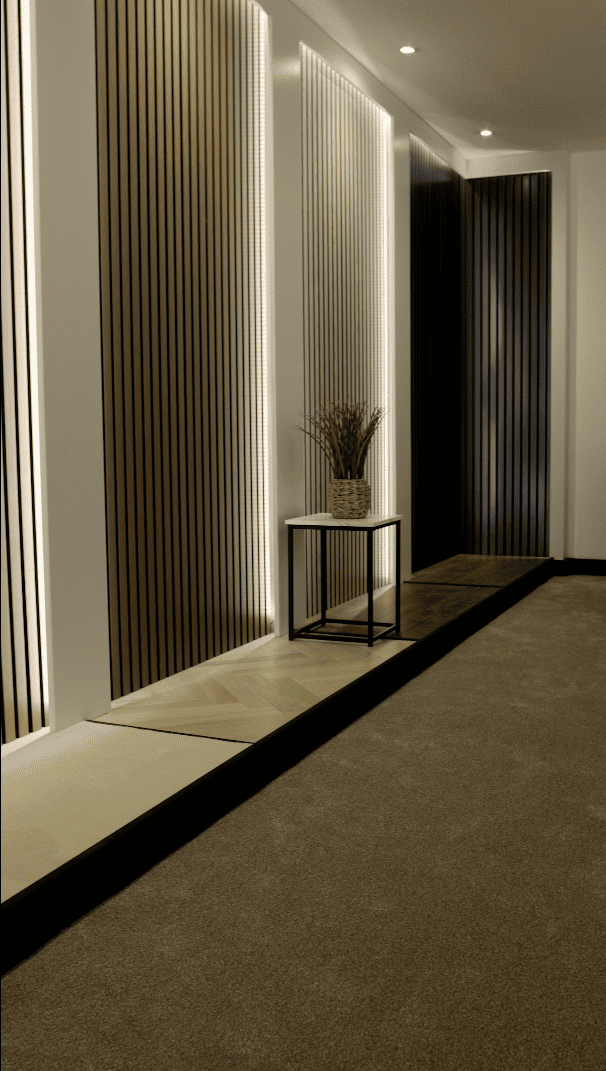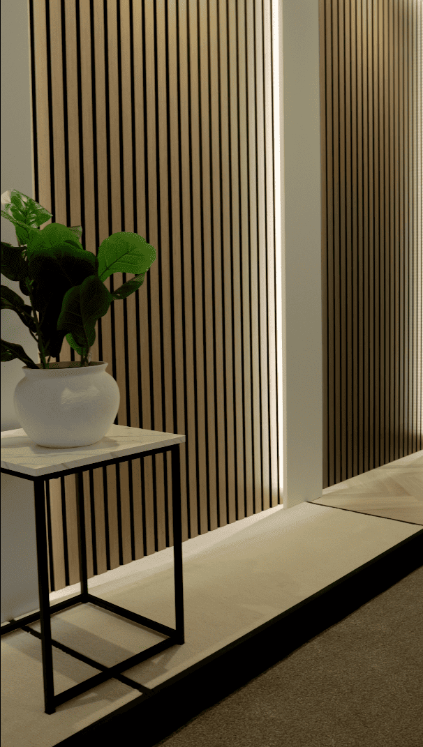 See how our decorative wood panels transform interiors with natural texture, rich finishes, and acoustic comfort — from cosy living rooms to modern offices.