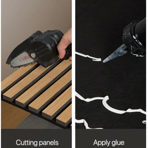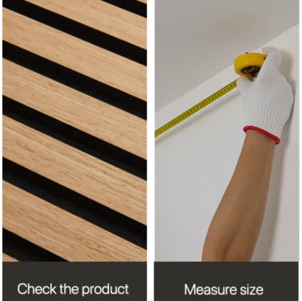 Measure the height of your wall and cut the panels to fit using a circular saw for precision. If you don’t have a circular saw, a fine-tooth handsaw will work for both the wood and felt backing.