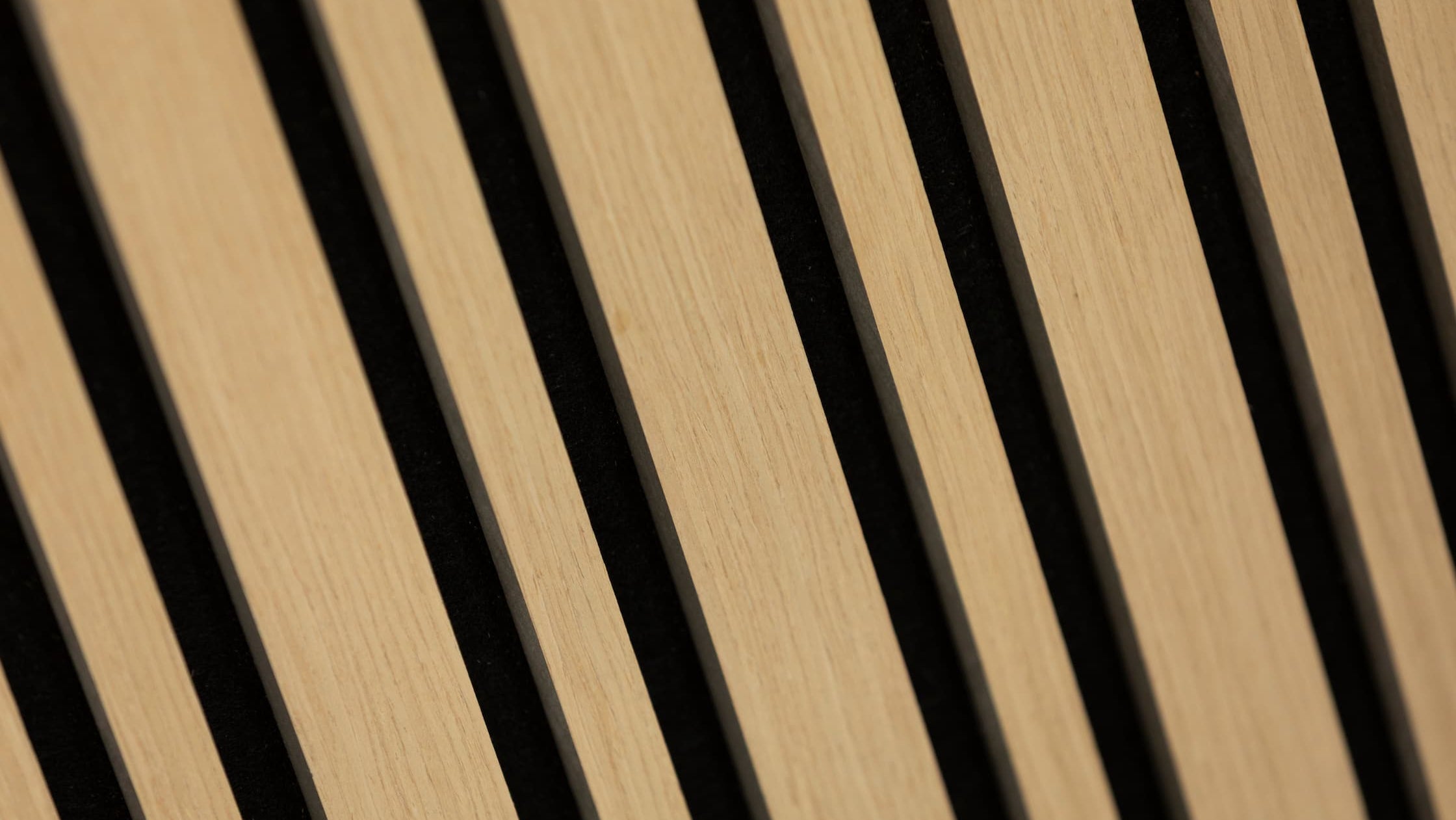 • Material: Real wood veneered E0 MDF slats + black acoustic PET felt